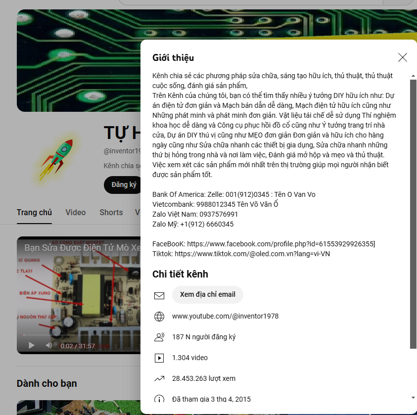 Tin tức xã hộiTổng hợp các kênh youtube dạy sửa chữa điện tử Posted on 25/11/202426/11/2024 by admin 25 NovDAY NGHE DIEN TU2. Dạy nghề điện lạnh Võ – Hà bài hát hay quá Lịch sử của máy tính Đi uống bia cỏ như này chắc nguyên 1 đội bắn tỉa trên nóc nhà : Sắp căng rồi Dịch vụ xóa xác minh tài khoản google trên điện thoại Android3.Dạy Nghề Bách Khoa – Hocnghetructuyen.vn – Gv Xuân Vĩnh4.TỰ HỌC NGHỀ LẬP NGHIỆP Đánh giá nhanh xiaomi Redmi note 7Đi uống bia cỏ như này chắc nguyên 1 đội bắn tỉa trên nóc nhà :